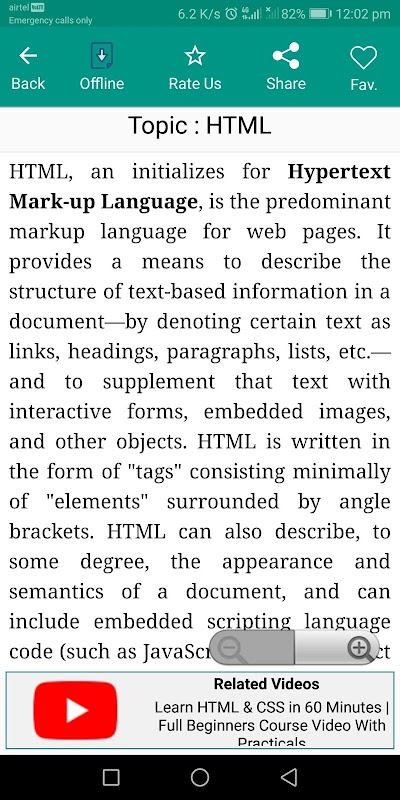 The app provides quick revision and reference to the important topics like a detailed HTML ,WWW , XML , JAVAScript , CGI & JSON.