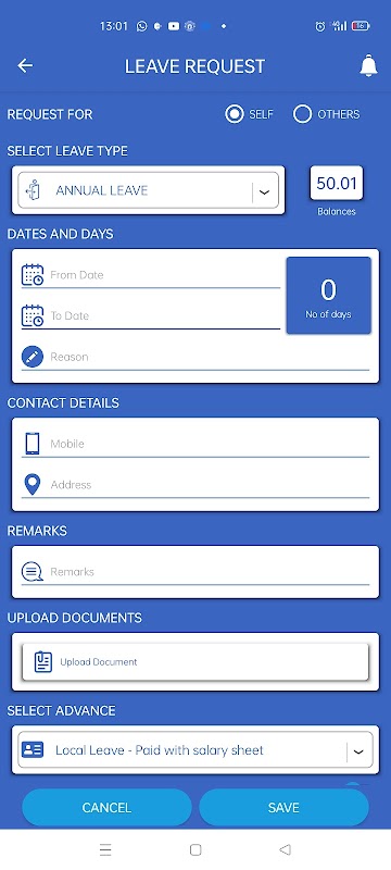 - چھٹی کے مختلف زمروں کے لیے درخواست۔