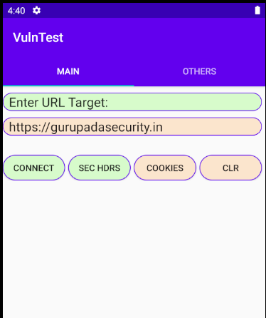 - The app is a Tabbed Application, with 3 Tabs – Vuln Test, Privacy Q and Report.