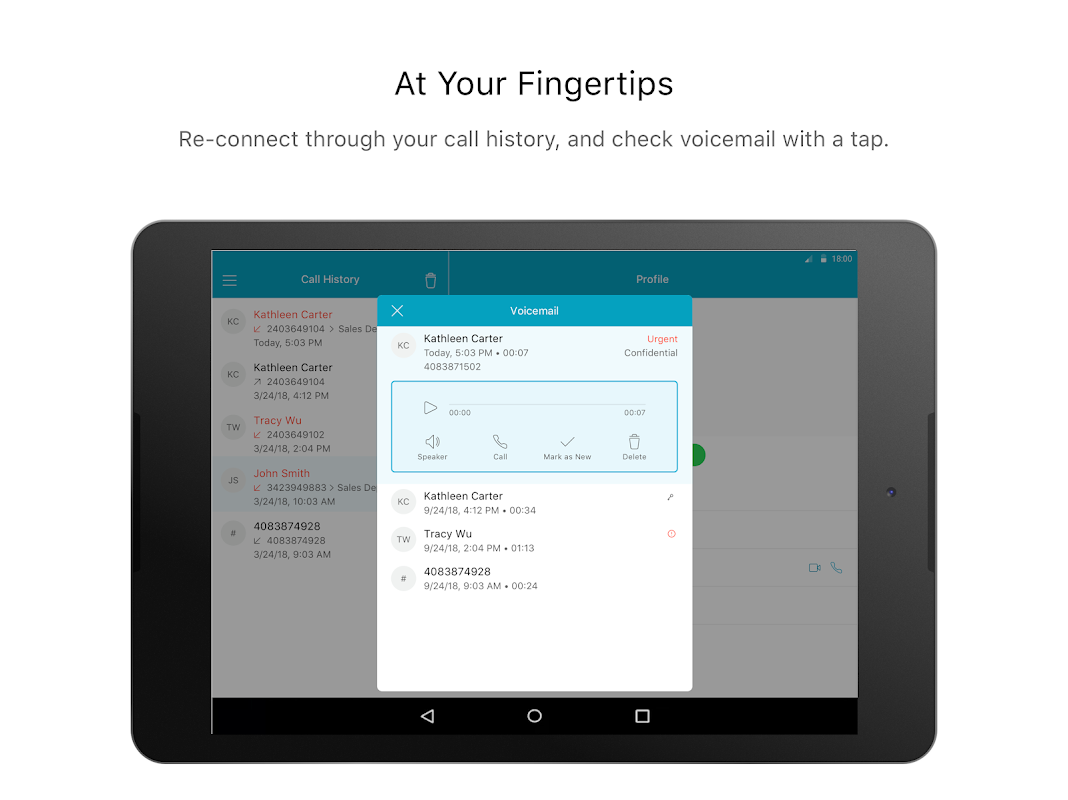 سسکو ویبیکس کالنگ ، مارکیٹ لیڈر ، سسکو سے ، آن پریمیسس PBX کا کلاؤڈ پی بی ایکس متبادل ہے۔ اپنے فون یا ڈیسک ٹاپ پر کاروبار کیلئے کال کریں۔ ایک کال کے ساتھ کثیر الجماعتی کانفرنس میں اپنی کالیں بڑھائیں۔ کال ہسٹری کے ذریعہ اپنی کالوں اور صوتی میل پر نظر رکھیں اور ان ایپ ڈائرکٹری کے ذریعہ اپنے ساتھیوں سے تلاش کریں اور ان سے رابطہ کریں۔ اس کے علاوہ آپ مربوط ہو جائیں ، سسکو ویبیکس ٹیموں اور موجودہ سیریز 6800 ، 7800 اور 8800 سسکو ڈیسک ٹاپ فونز کے ساتھ آپریشن کو آگے بڑھانے کے لئے ایک بٹن۔