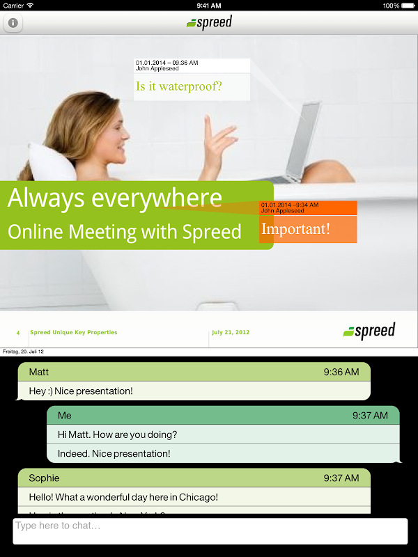 With Webinar you can easily attend Spreed online meetings and telephone conference calls and keep track of meeting invitations.
