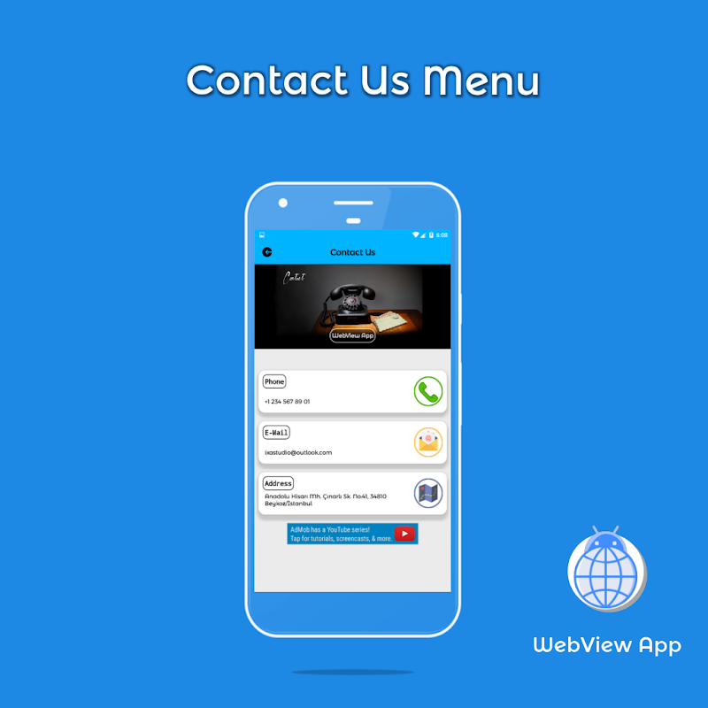 Once you have purchased this project, you can integrate your mobile-compatible web sites into this application, add your personal information, and allow users to reach your website in a more convenient way.