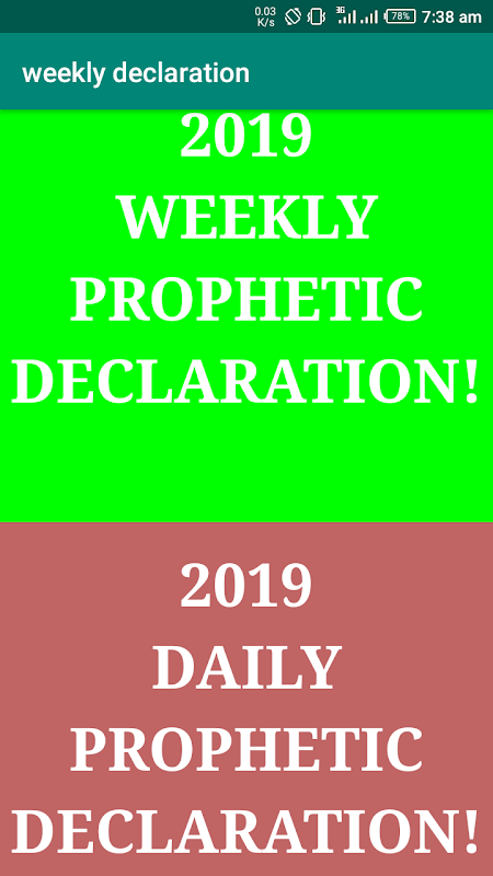 (Prayer app) Weekly declaration app also contains daily declaration for daily needs. It is time to start receive the goodness of God in your life.