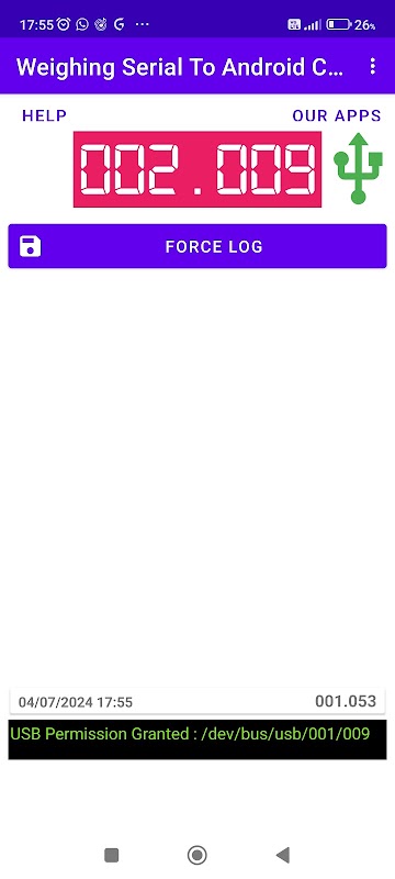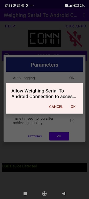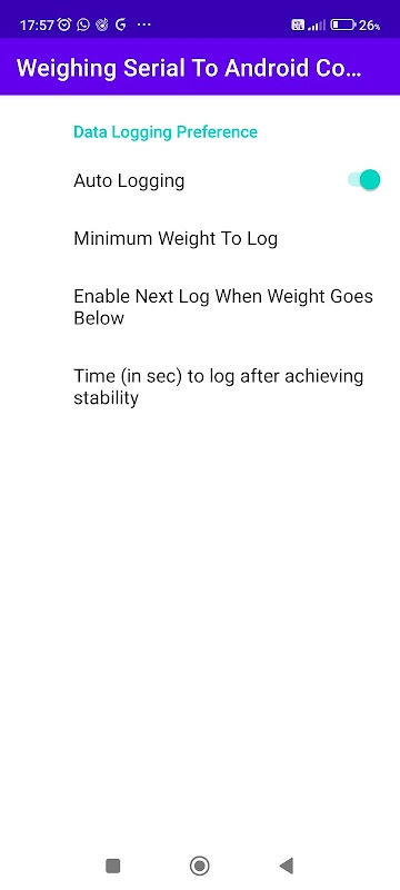 سیریل پورٹ اور لاگ ڈیٹا کے ذریعے وزنی پیمانے کو جوڑنے کے لیے اینڈرائیڈ ایپ