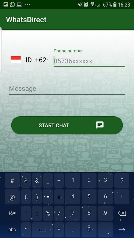 Whats Direct is an application to direct messages to whatsapp without saving numbers to phone contacts first, This application is also available with code numbers all over the world so that you can send messages to various countries easily
