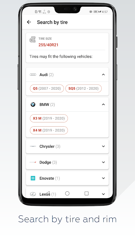 اپنی گاڑی کے میک ، سال ، ماڈل اور ٹرم میں داخل ہوکر اپنی گاڑی کے بارے میں پہیے سے متعلق معلومات کی مکمل فہرست فراہم کریں۔
