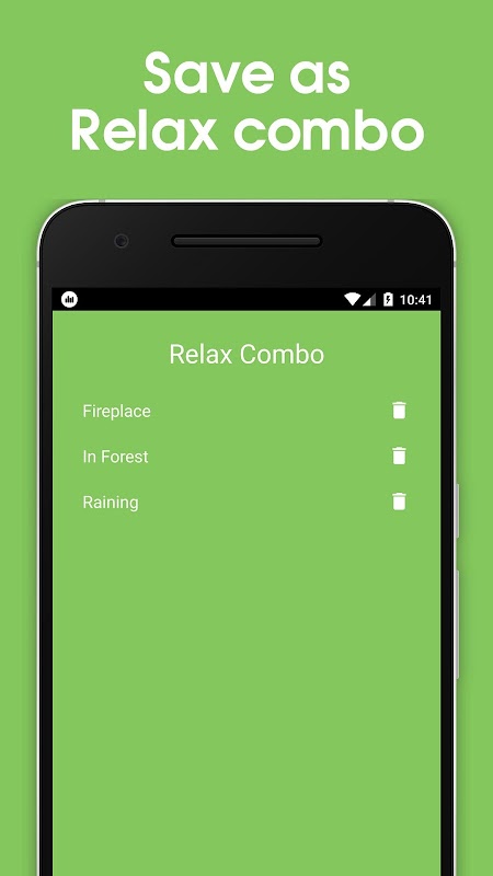 یہ ایپ بارش ، گرج چمک ، ہوا ، پرندوں کے ساتھ جنگلات ، پانی کی بھاپ ، ساحل ، آگ کی جگہ ، سمر نائٹ کی کچھ آوازوں کو منتخب اور اختلاط کرکے اپنے پسندیدہ وائٹ شور کو تخلیق کرنے میں آپ کی مدد کرتی ہے۔ یہ ایپ آپ کے حجم کو ایڈجسٹ کرنے میں بھی مدد کرتی ہے کچھ آواز
