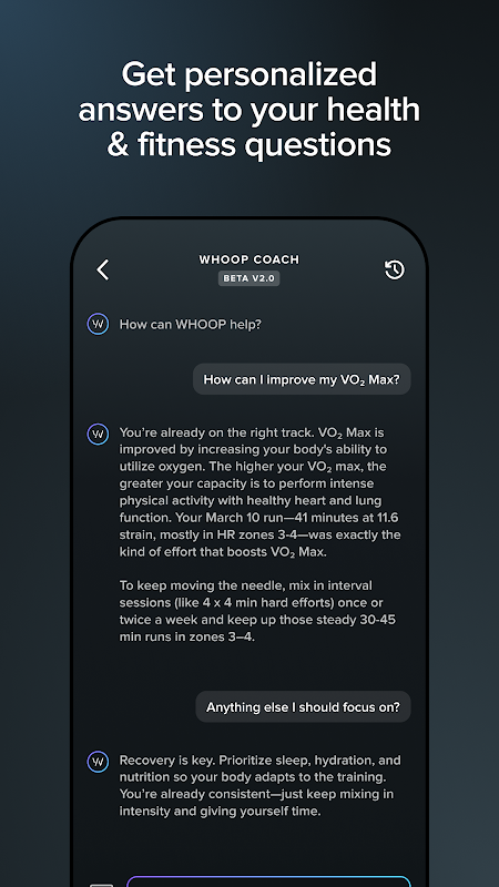 WHOOP کوچ: اپنی صحت اور تندرستی کے بارے میں سوالات پوچھیں اور انتہائی ذاتی نوعیت کے، آن ڈیمانڈ جوابات حاصل کریں۔ آپ کے منفرد بایومیٹرک ڈیٹا، جدید ترین پرفارمنس سائنس، اور جنریٹیو AI کا استعمال کرتے ہوئے، WHOOP کوچ تربیتی منصوبوں سے لے کر آپ کو تھکاوٹ کیوں محسوس کر رہے ہیں، ہر چیز پر ردعمل پیدا کرتا ہے۔