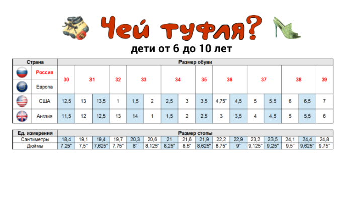 Appendix "Whose shoe?" - Find out the shoe size on the foreign label.