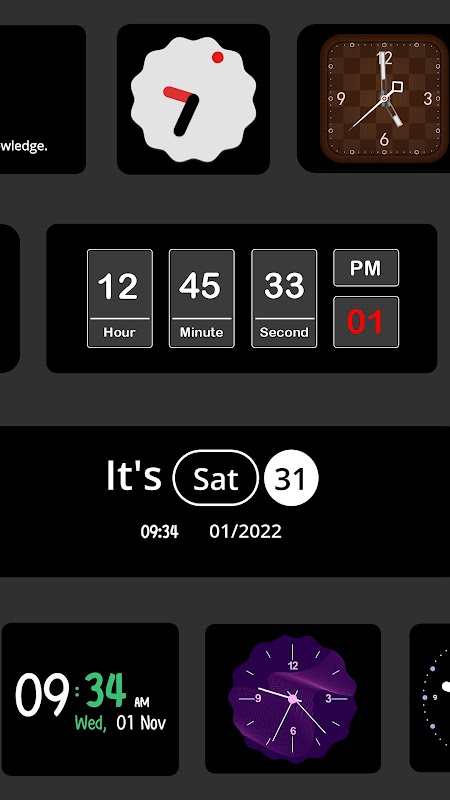 ● متعدد طرزیں جن میں سے انتخاب کرنا ہے، گھڑی کے ساتھ ساتھ دکھایا جا سکتا ہے۔