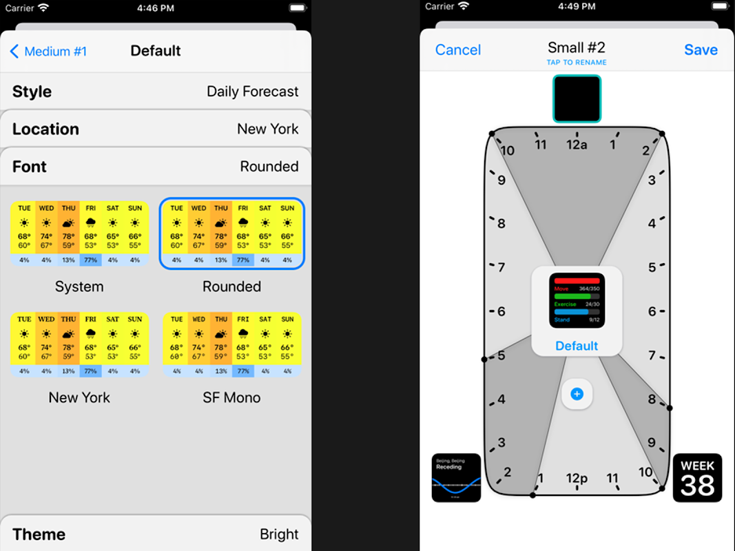 This set of widgets can then be dynamically scheduled to appear on your home screen following rules you define. For example, a particular widget could show the weather first thing in the morning, then your calendar during your work day, then switch to your Activity ring progress as you wrap up your day. This lets you take full advantage of each slot on your home screen.