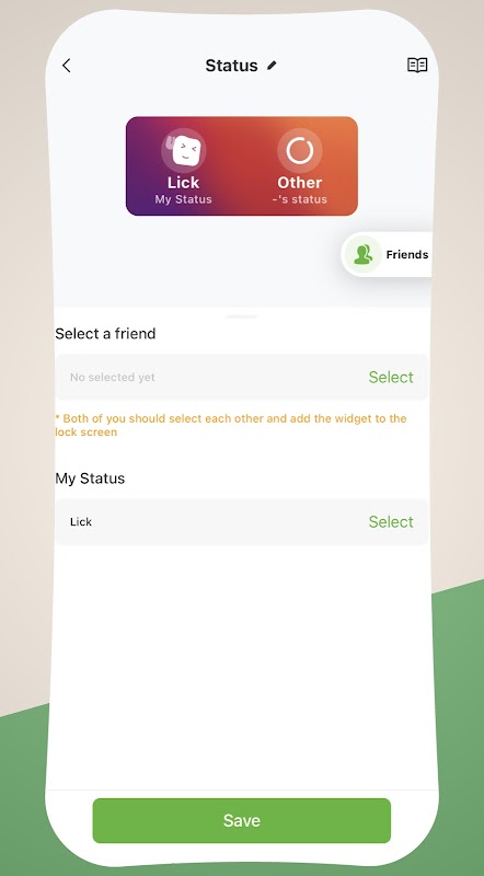 This widget updates the status of your friend. When your friend is feeling frustrated, you can provide a hug and display it on his or her lock screen.