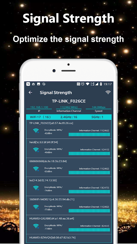 ایپ آپ کے آس پاس کے وائرلیس سگنلز کے بارے میں مفید معلومات فراہم کرتی ہے۔ یہ 2.4Ghz اور 5Ghz کی حمایت کرتا ہے۔ وائی فائی تجزیہ کار (نیٹ ورک تجزیہ کار) ایپ آپ کے وائی فائی نیٹ ورک کے تجزیہ اور نگرانی کے ذریعے نیٹ ورک کی کارکردگی کو بڑھانے میں معاون ہے!