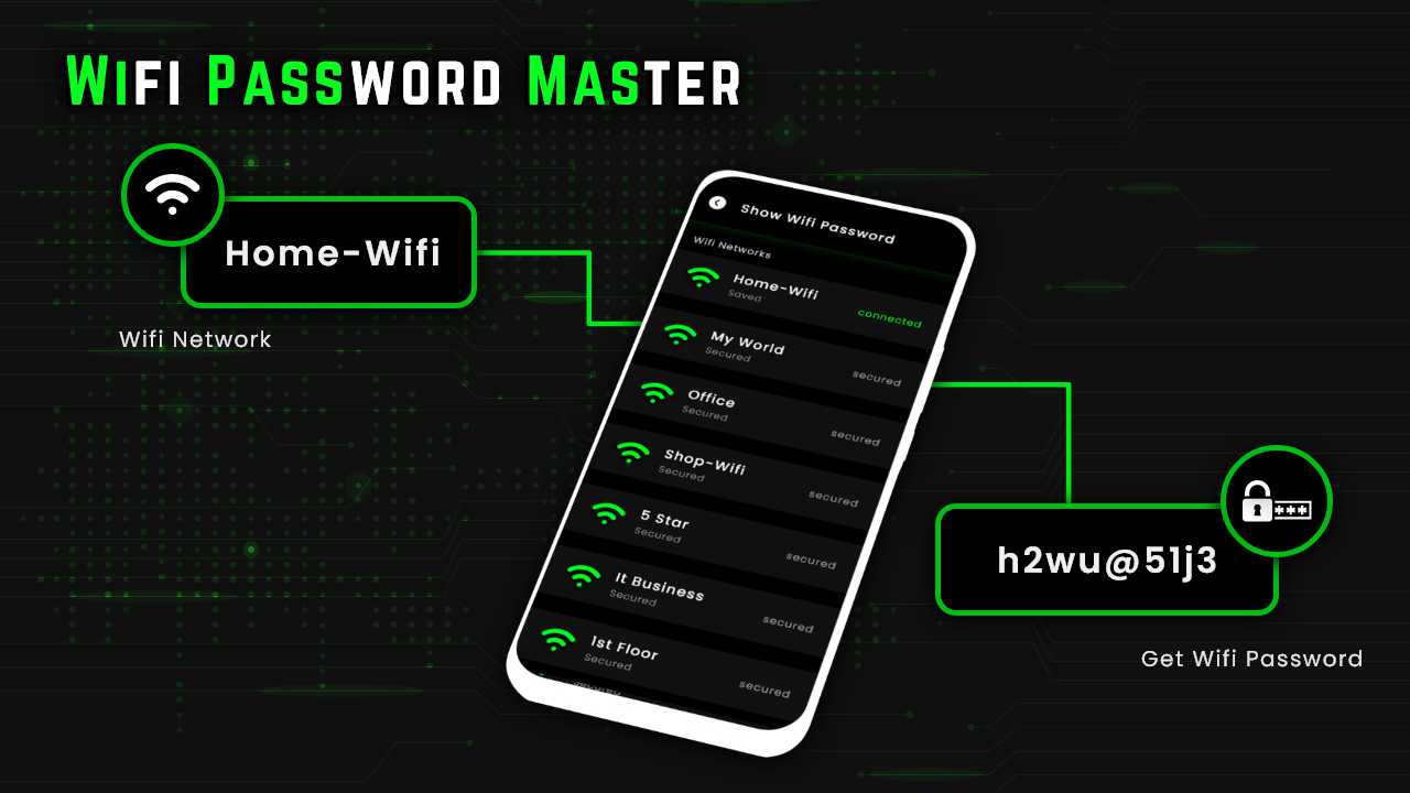 🌲 وائی فائی پاس ورڈ جنریٹر: اپنے وائی فائی راؤٹر اور موبائل ہاٹ اسپاٹ کے لیے مضبوط پاس ورڈ بنائیں اور مستقبل کے استعمال کے لیے محفوظ/کاپی کریں ان تمام محفوظ کردہ پاس ورڈ کو وائی فائی پاس ورڈ ماسٹر کے پاس ورڈ کی خصوصیت دکھانے کے لیے ہدایت کی جائے گی۔ کنیکٹڈ ڈیوائسز: وہ تمام ڈیوائسز دکھائیں جو آپ کے وائی فائی کو اپنے آئی پی ایڈریسز اور میک ایڈریسز کے ساتھ استعمال کررہے ہیں۔