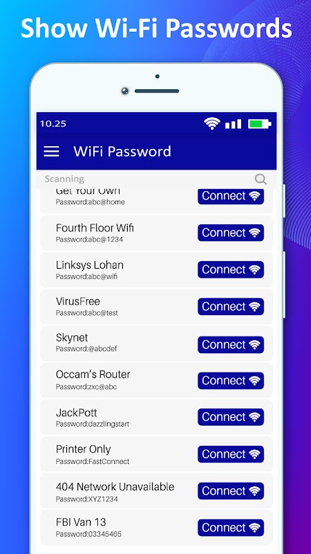 وائی فائی پاس ورڈ ماسٹر - تمام دکھائیں وائی فائی پاس ورڈ ایک ایسی ایپلی کیشن ہے جو کسی بھی اینڈرائڈ ڈیوائس پر وائی فائی پاس ورڈز کا نظم و نسق اور بیک اپ لیتا ہے۔ وائی فائی پاس ورڈ ماسٹر آپ کو اپنے وائی فائی پاس ورڈ کی بازیافت کرنے کی اجازت دیتا ہے جو آپ نے ماضی میں کبھی بھی آپ کے آلے سے ان مقامات پر منسلک کیے ہیں جن سے پہلے آپ جڑ چکے ہیں لیکن آپ کو پاس ورڈ یاد نہیں ہے۔ آپ اوپن وائی فائی مفت پاسکتے ہیں۔