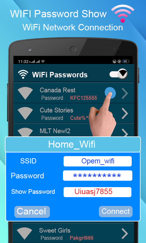 وائی فائی پاس ورڈ کلیدی شو ایپ صارف کے کسی بھی قسم کا ڈیٹا ذخیرہ نہیں کرتی ہے۔