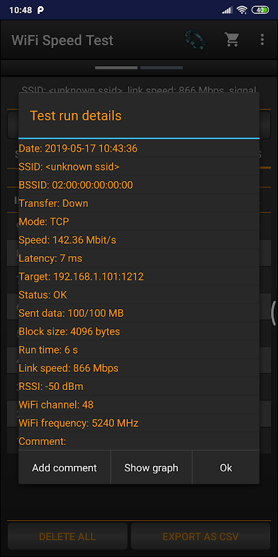 if وائی فائی اسپیڈ ٹیسٹ کے ماضی کے نتائج کو خود بخود محفوظ کریں ، بشمول ڈاؤن لوڈ اور اپ لوڈ کی رفتار ، پنگ ، سگنل کی طاقت ، نیٹ ورک کا نام ، IP پتہ