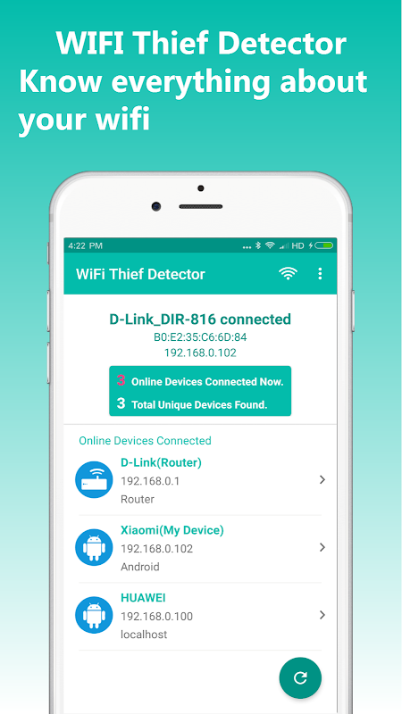Don't worry, WiFi Thief Detector can easily scan my wifi and see how many people or device connected to your network router such ar tplink/tp-link router, dlink router, netgear router or huawei router etc.