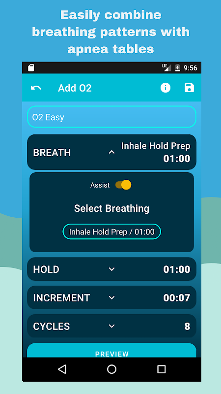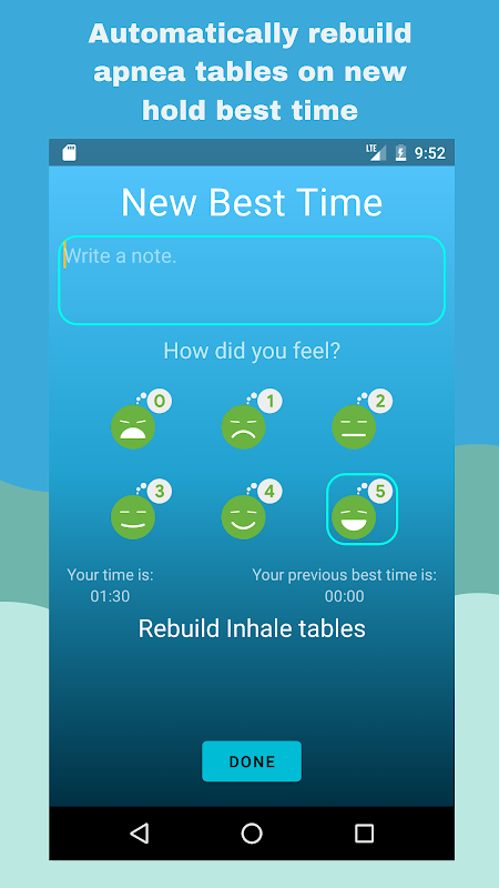 ایپ میں apnea ورزش کے ساتھ ، آپ اپنے ہولڈ ٹائم کو نمایاں طور پر بہتر کرسکتے ہیں۔