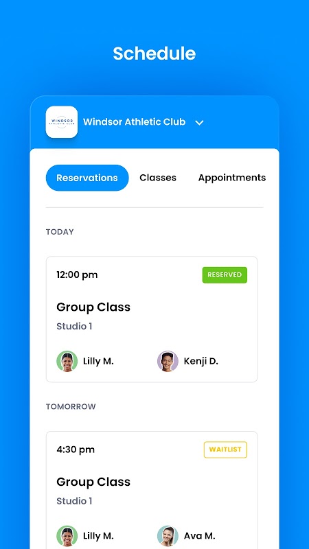 ونڈسر ایتھلیٹک کلب کے اراکین کے لیے کلاس کے تحفظات اور اکاؤنٹ کا انتظام
