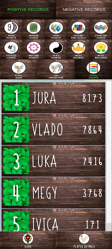 اس ایپلی کیشن کا اہم حصہ صارفین کی حقیقی زندگی کے گیمز سے حاصل کردہ مختلف ریکارڈز پر نظر رکھنے کی صلاحیت بھی ہے۔ صارفین دو قسم کے ریکارڈز دیکھ سکتے ہیں۔ ریکارڈ "فی کھلاڑی" صارفین کو ایک مخصوص کھلاڑی کے کل پوائنٹس، جیت، اوسط پوائنٹس اور بہت کچھ دکھائے گا، جبکہ "تمام گیمز" کے ریکارڈز صارفین کو سب سے زیادہ کھیلے گئے اسکور، پوائنٹس، جیت، جیت کا فیصد اور بہت کچھ فراہم کریں گے۔ کھیل.