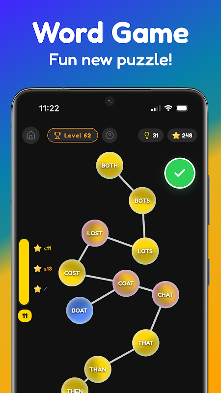 بلبلنگ پہیلیاں میں الفاظ جوڑیں۔ مختصر ترین راستہ تلاش کرنے کے لیے خطوط کا تبادلہ کریں!