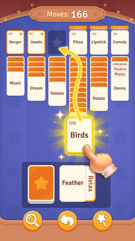 4. تمام کارڈز کو درست طریقے سے ترتیب دینے کے لیے سولٹیئر ایسوسی ایشن کی مہارتوں کا اطلاق کریں۔
