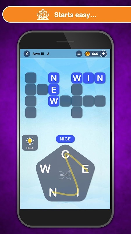 Achieve mindfulness with this soothing word puzzle. Allow your stressors to melt away as you progress from one meditative level to the next. Hypnotic ambience and mesmerizing word play combine in this all new experience from the makers of Letter Soup.