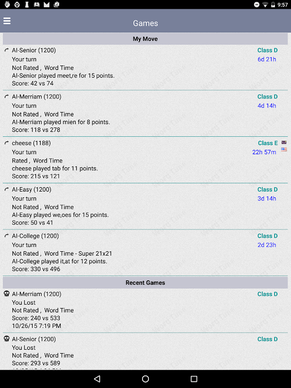 * Opponent stats showing games against statistics as well as stats showing best word, longest word, average points per move and more.