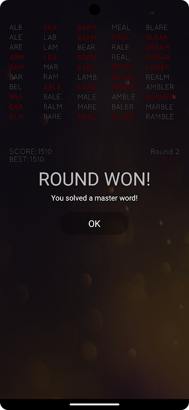Wordmaster ایک نشہ آور anagram گیم ہے جہاں مقصد 6 حرفی لفظ کی بنیاد پر زیادہ سے زیادہ حقیقی الفاظ بنانا ہے۔