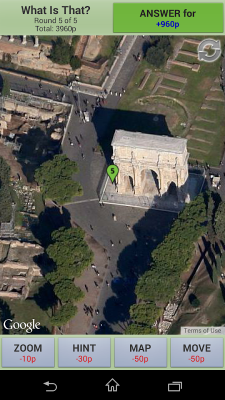 To make things easier, you may ask for hints, move the map, zoom in/out and change between satellite and map mode. Any help action cost some points, so the less help you ask, more points you get!
