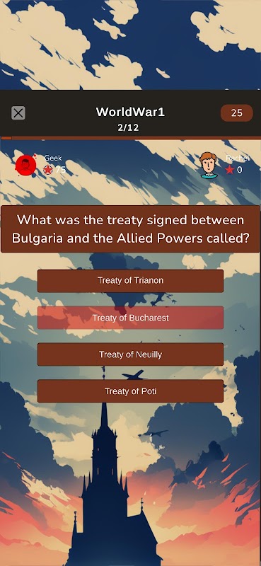 🎮 اپنے دوستوں کو چیلنج کریں: اپنے ساتھیوں کو اکٹھا کریں یا شدید ریئل ٹائم ملٹی پلیئر کوئزز میں دنیا بھر کے کھلاڑیوں سے مقابلہ کریں۔ حکمت عملی بنائیں، مقابلہ کریں اور غلبہ حاصل کریں جب آپ پہلی جنگ عظیم کی تاریخ میں اپنی مہارت ثابت کریں۔