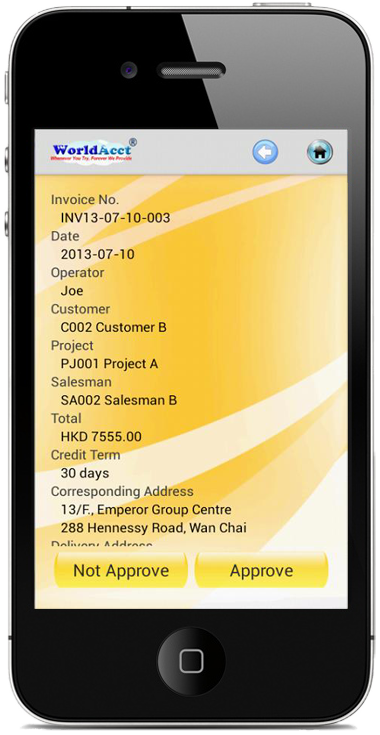 WorldAcct Cloudr allows user to handle daily business transactions while he / she is at anywhere outside the office. This greatly enhances the productivity and collaboration of the enterprise.