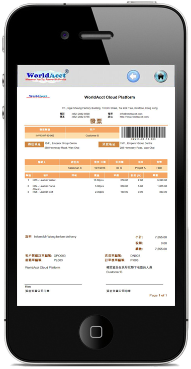 User may handle business transactions through Cloud model with different access authorization at anywhere (company or other locations), and it is convenient and reliable that user does not have to install any program in the computers or mobile devices. Moreover, the user interfaces of 【WorldAcct】system is user-friendly with clear design, so that user without any computer experience or accounting knowledge, may fully understand and easily operate and use the functions of the system in few minutes.