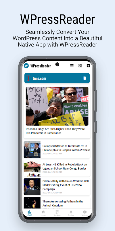 1. خوبصورت مقامی ایپ ڈیزائن: بصری طور پر دلکش ایپ انٹرفیس سے لطف اندوز ہوں جو آپ کی ورڈپریس سائٹ کے جوہر کو ظاہر کرتا ہے۔ WPressReader ویب سے موبائل میں ایک ہموار منتقلی تخلیق کرتا ہے، اس بات کو یقینی بناتے ہوئے کہ آپ کے برانڈ کی شناخت چمکتی ہے۔
