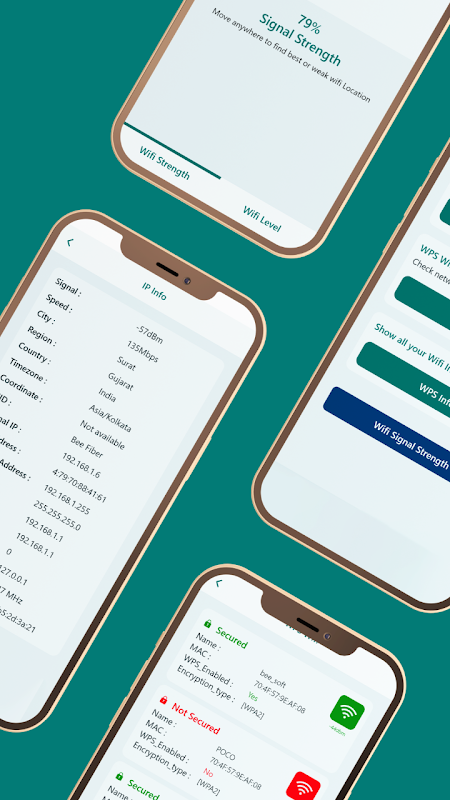 ➥By using this WPS WiFi Connect : WPA Tester app you can get all the information about the WPS WiFi Connect it will include the information like signal, Speed, City, region, country, timezone, coordinate, SSID, Internal IP, MAC address, Broadcast Address, Mask Gateway and localhost or many more easily you can get information about this app WPS WiFi Connect : WPA Tester