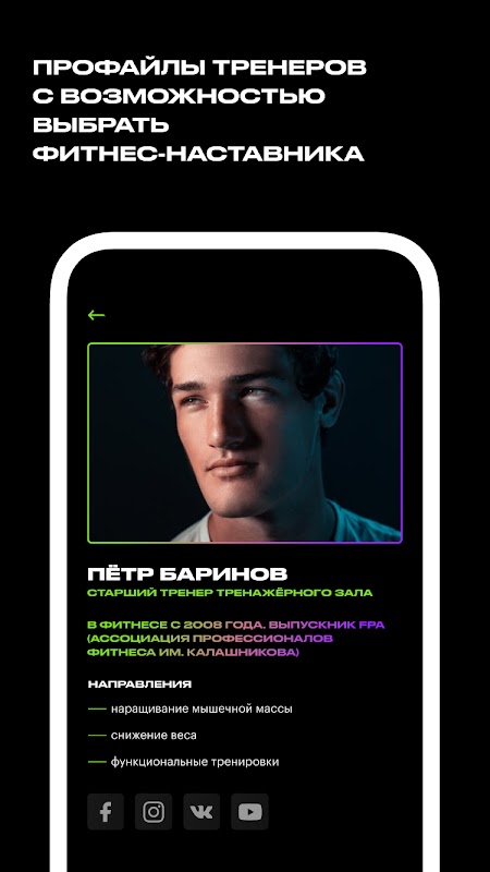 - получать полную информацию о клубах сети, включая фотографии и контакты;
