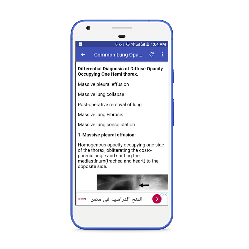 اس ایپلی کیشن میں یہ واضح کیا گیا ہے کہ کس طرح بنیادی طبی تابکاری علامات ، پیتھالوجی اور عام طبی حالات سے وابستہ نمونوں کو کیسے پہچانا جائے جیسا کہ ایکسری ریڈیوگراف پر دیکھا جاسکتا ہے