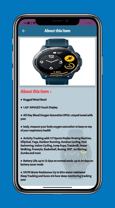 آپ کو xiaomi واچ s1 ایکٹیو واچ کی تمام تفصیلات دکھا رہا ہے۔