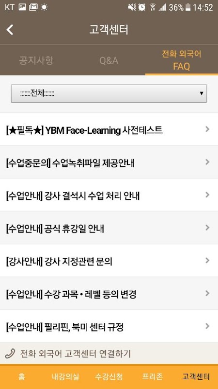 - 현재 수강신청이 가능한 과정들에 대해 수강신청 기능 및 강의내용, 수강일정 확인 (전화영어 포함)