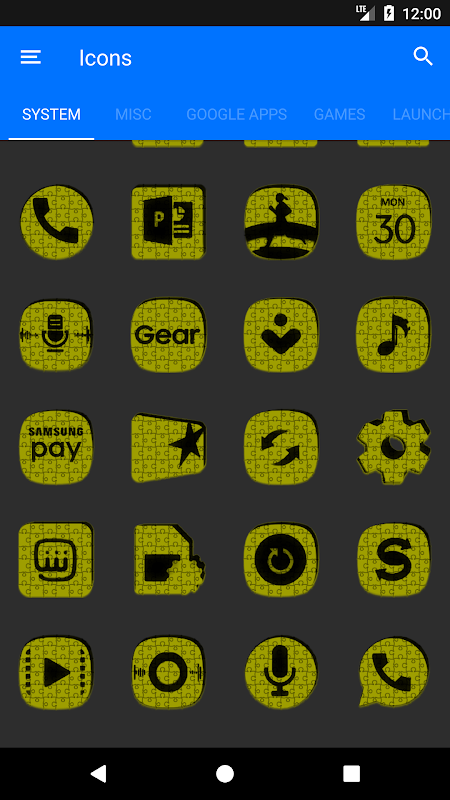 Icon Pack contains 3100+ Icons for mobile phones and tablets, click on "See More" at the bottom of the page or search for "Ronald Dwk" for more icon packs, there are over 300 icon packs both free & paid to choose from in different colors, shapes and designs.