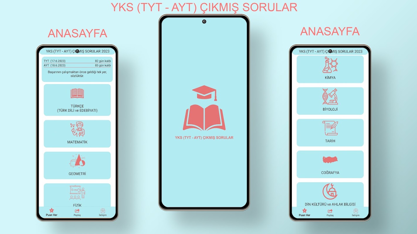 یہ ایپلیکیشن ایک سوالیہ بینک ہے جسے ہائر ایجوکیشن انسٹی ٹیوشنز امتحان (YKS) کی تیاری کرنے والے طلباء استعمال کر سکتے ہیں۔ درخواست میں YKS کورسز جیسے ترکی، ریاضی، جیومیٹری، تاریخ، جغرافیہ، فلسفہ، مذہبی ثقافت اور اخلاقیات کے سوالات شامل ہیں۔