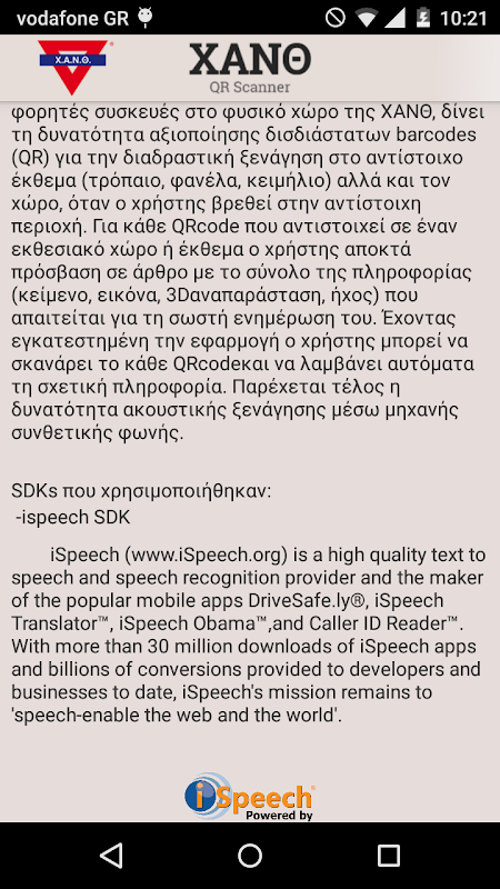 -SDK που χρησιμοποιήθηκαν: iSpeech SDK