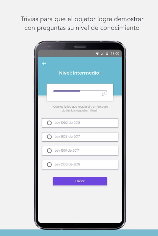 La idea de una aplicación móvil surge desde los territorios aliados de Justapaz que con el transcurrir del trabajo articulado se fue constituyendo como una propuesta pedagógica-lúdica que por medio de la interacción genera incidencia y empoderamiento en los Objetores de conciencia al servicio militar Obligatorio. Luego de evolucionar en las metas de la misma, se logran plantear unos objetivos con una metodología de investigación que permita conocer y analizar las opiniones, valoraciones y propuestas de los objetores en el momento de definir su situación militar o cuando desean información sobre el trámite legal, Objeción de Conciencia y Noviolencia en la definición SMO; contando con la colaboración de aliados de los diferentes colectivos territoriales e iglesias que trabajan en pro de la creación de paz quienes expresaron sus expectativas ante una herramienta que permitiera promocionar, divulgar y formar la Objeción de Conciencia al servicio Militar.