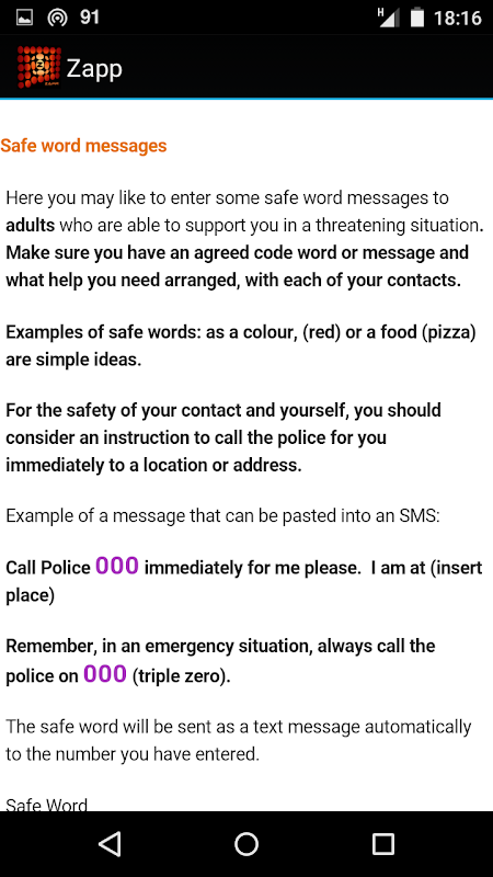ZAPP! App puts you in control of your actions through asking for support for yourself, your family or friends. Zapp! provides contacts and services for the Moreton Bay Region that have been selected for their focus on assisting male and female young people. Emergency numbers can be used throughout Queensland.