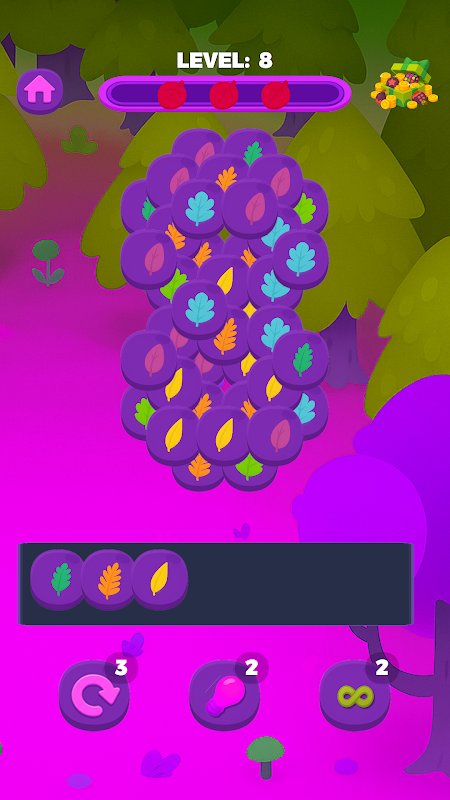 اگلے چیلنجنگ پر جانے کے لیے تین ایک جیسی سیدھ میں کر کے ٹائلیں صاف کریں۔
