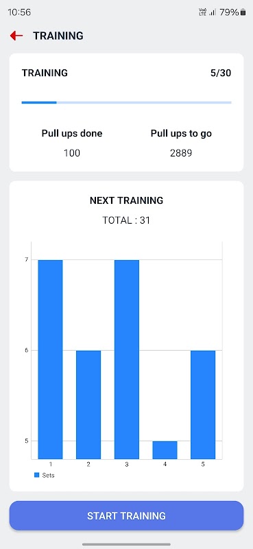 * 4 مختلف وقفوں (ہفتہ، مہینہ، سال اور تمام) میں پل اپس، وقت اور کیلوریز جلانے کے لیے جدید گراف