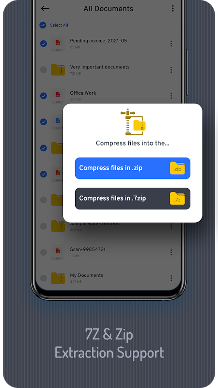 فائل زپ اور انزپ ایپ آپ کو ایک دستاویز سے تمام دستاویزات کو کمپریس کرنے اور ان کے سائز کو ڈسک پر سکڑانے کی سہولت دیتی ہے۔ اپنی تمام بڑی فائلوں کو زپ کریں اور ان کے سائز کو کم کریں۔