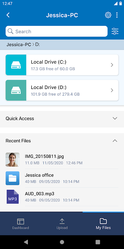- اپنے موبائل آلہ سے ، کمپیوٹر کے اندر فائلوں کی تلاش کریں