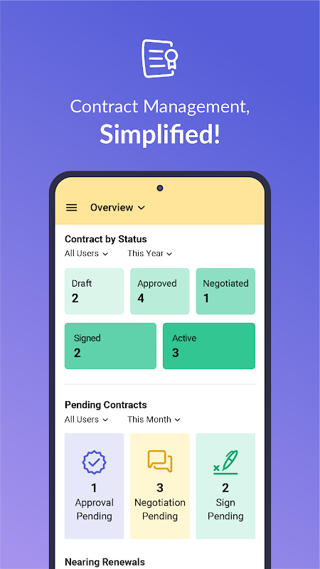 • ڈیش بورڈ کے ساتھ اپنے معاہدوں کا اعلیٰ سطحی جائزہ حاصل کریں۔